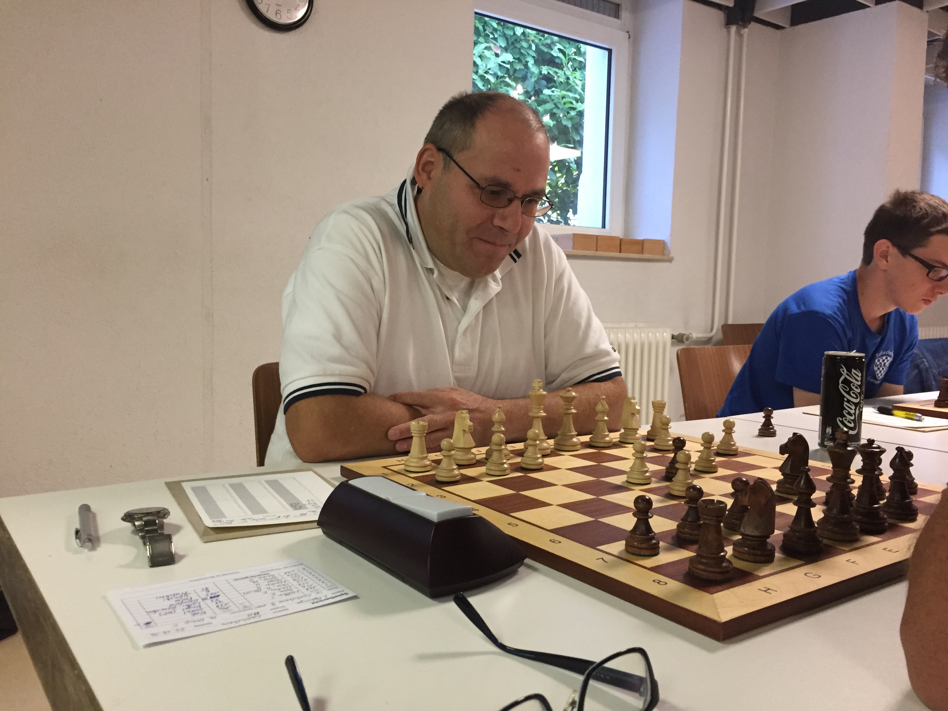 Zur gleichen Zeit war Gerald (8) mit der Damenjagt des Gegners beschäftigt, als er durch ein taktisches Manöver des Gegners zwei wichtige Zentralbauern einbüßte. Dieser Nachteil war nicht mehr auszugleichen und es stand 2,5:0,5