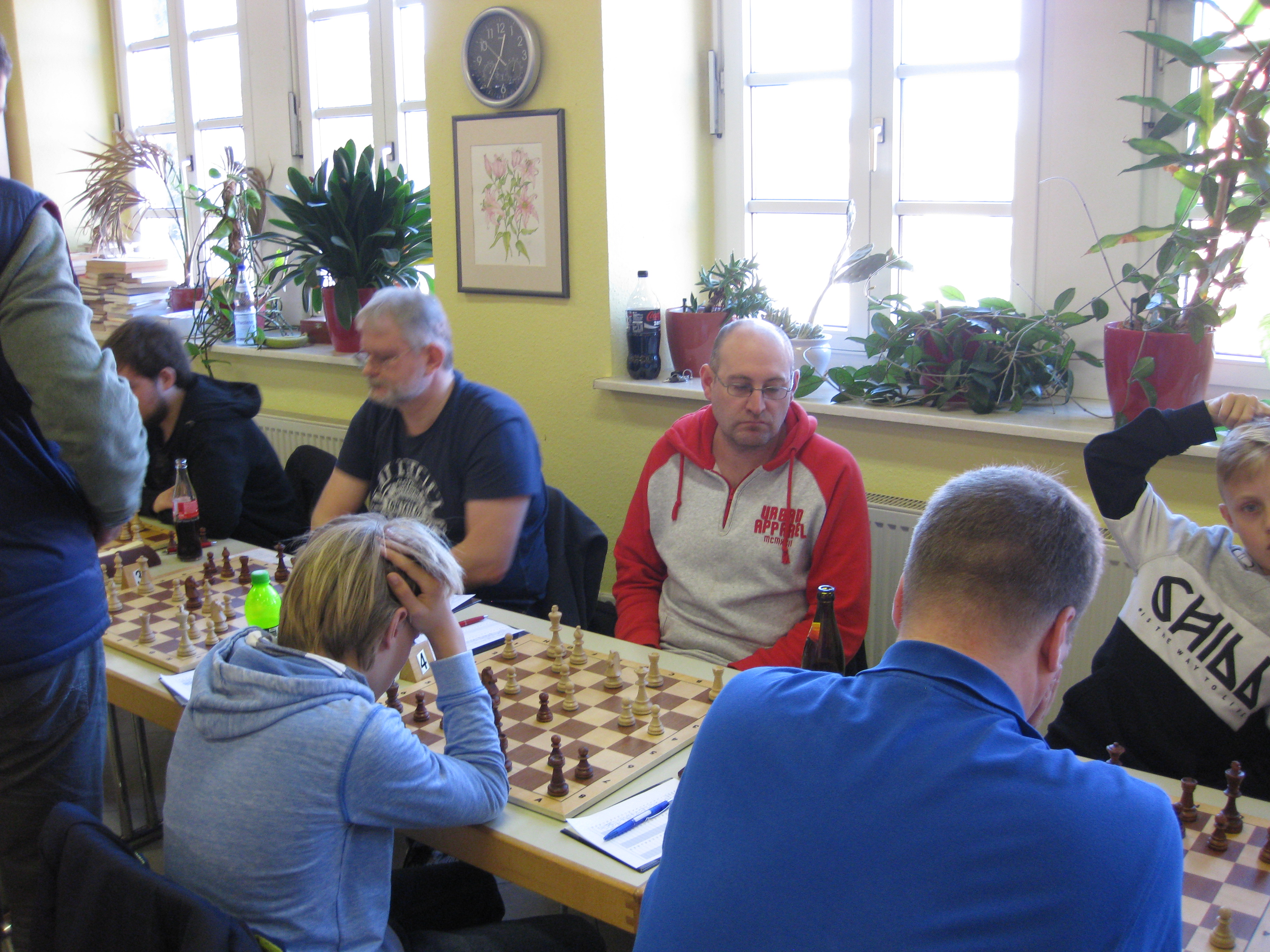 Nach 3 Stunden Spielzeit war noch keine der Partien entschieden, auch wenn es an dem ein oder anderen Brett entweder etwas besser oder auch etwas schlechter stand. Die erste Partie die dann mit einem Remis beendet wurde war die Partie von Thomas Mühlpfordt gegen Ulli Diesterweg. Ein wichtiger und starker halber Punkt für Lambsheim.