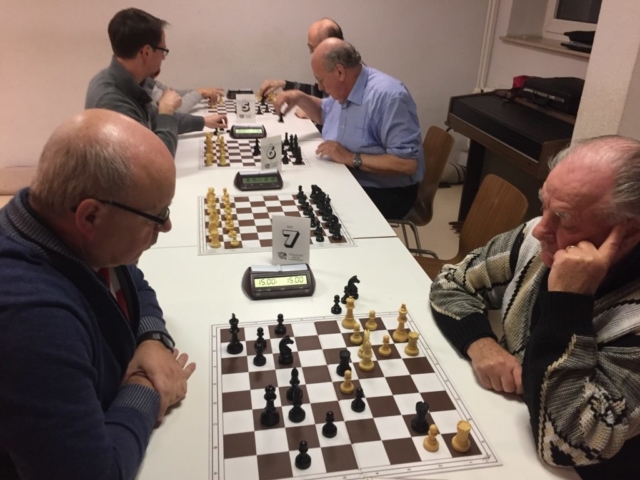 Im Rahmen der Weihnachtsfeier wird traditionell die Schnellschachvereinsmeisterschaft gespielt. Es waren 17 Teilnehmer am Start, die in 5 Runden den Vereinsschnellschachmeister ausspielten. In Runde 1 gab es keine großen Überraschungen, außer das Remis von Dieter Hess gegen Mario Dalchow. In Runde 2 konnte dann Felix Wacker seine Partie gegen Roland Saive gewinnen und bestätigte die starke Form der vergangenen Wochen. Auch Kirstin Achatz und Michael Achatz gewannen Ihre Partien.