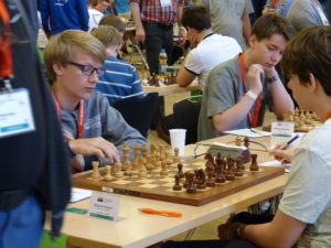 In der U14 sind 48 Teilnehmer am Start und Thomas ist auf Setzplatz 34. In Runde 1 spielt er aktuell gegen Benjamin Wagner vom SC Magdeburg, welcher mit seiner DWZ von 2043 zählern auf Setzlistenplatz 10 ist.